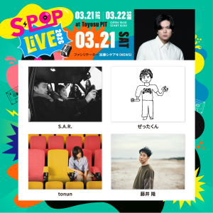 3/21 出演者:ファシリテーター:加藤シゲアキ(NEWS) 出演アーティスト:S.A.R. / ぜったくん / tonun / 藤井隆